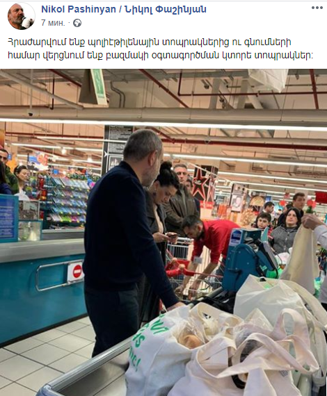 Հրաժարվում ենք պոլիէթիլենային տոպրակներից. Փաշինյանը տիկնոջ հետ գնացել է գնումների