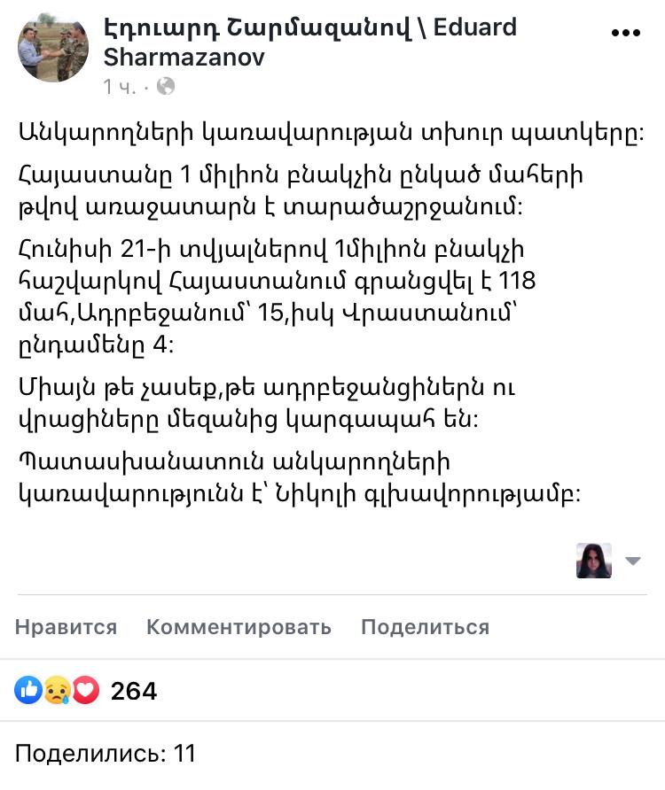Պատասխանատուն անկարողների կառավարությունն է՝ Նիկոլի գլխավորությամբ։