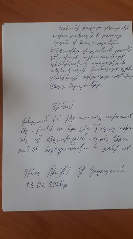 Էս դիմումս էլ ձեզ նվեր»,-գրել է աշխատակիցը՝ կից ներկայացնելով դիմումի լուսանկարը։