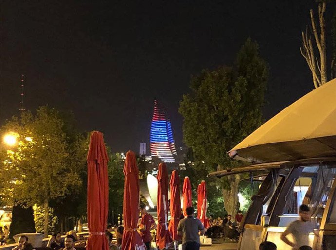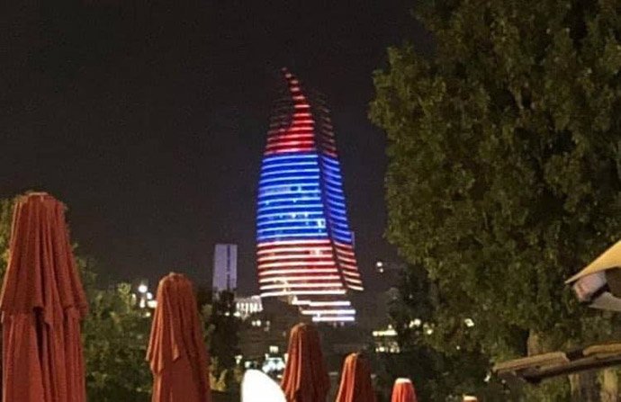Հայ Հակերները ՀՀ եռագույնն են ցուցադրել Բաքվի երկնաքերի վրա։