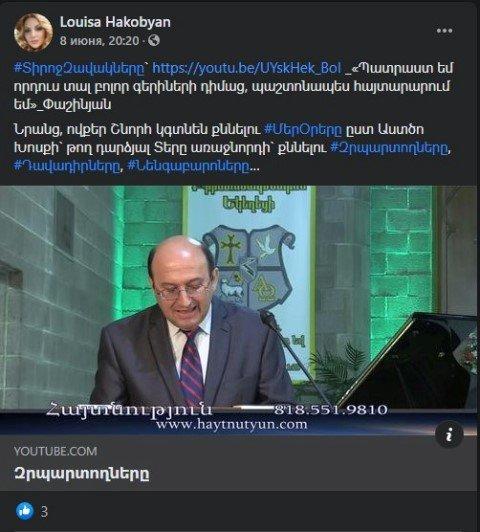 iravunk.com. «Սաղմոսերգու» ԺՊ Փաշինյանը վերջին օրերին կտրուկ փոխել է իր հռետորաբանությունը՝ վարչապետից վերածվելով կրոնական ագրեսիվ քարոզչի: Այս էլ որերորդ անգամ է նա պետական ռեսուրսների անխնա օգտագործմամբ` քարոզարշավը համալրում է հոգեւոր քարոզչությամբ: Փաշինյանին հիմա էլ խանգարում է եկեղեցին. երեկ նա լուրջ մեղադրանքներ էր հնչեցնում եկեղեցու հասցեին, կարծես թե, երկրի ղեկավարը այլ մարդ է, իսկ ինքն էլ բողոքում էր եկեղեցուց, առանց որեւէ փաստերի եկեղեցուն տեղավորելով «էլիտաների» շարքերում: Իսկ որ ավելի զավեշտալ էր, շահույթ չհետապնդող կառույցին՝ եկեղեցուն, մեղադրում կոռուպցիայի մեջ: Զարմանալի է, բայց վարչապետի պաշտոնակատարն անգամ փոքր պատկերացում չունի, թե ինչ է կոռուպցիան եւ որտեղ կարելի է կիրառել այդ հասկացությունը: