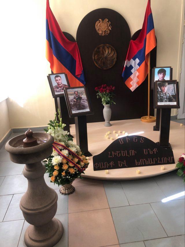 Դպրոցի սաները պիտի ամեն օր տեսնեն հիշեն ու խոնարհվեն նրանց սխրանքի առջև, որպեսզի տղաների հերոսական պայքարի ընդհատված ուղին շարունակելու ու բոլորիս երազած խաղաղ, բարեկեցիկ, հզոր Հայաստանը կերտելու ունակ սերունդ դաստիարակվեն;: