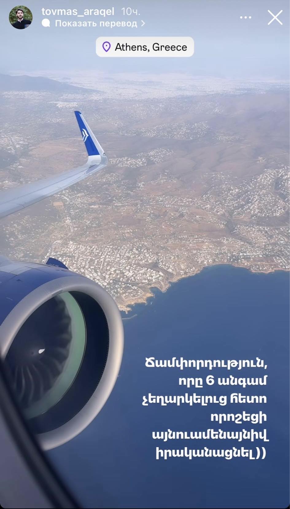 Նրանց շարքին է դասվում ուրարակիր Առաքելյանը։ Ինչպես արդեն նշել էինք, վերջինս սոցիալական ցանցերում բազմաթիվ հետևորդներ ունի, ու ինստագրամում «սթորիներ» է արել իր հերթական ճամփորդությունից։ Երեկ նա ինստագրամի իր «սթորի» բաժնում հայտնել է, որ վեց անգամ չեղարկված ճամփորդությունը վերջապես իրականացրել է։ Հետո առանց ժամանակ կորցնելու հայտնել է՝ քանի որ Աթենքում եղել է, ուղղությունը փոխում է։ Չի մոռացել ինքնաթիռի պատուհանից ևս լուսնակար հրապարակել ու այդպես շարունակ։