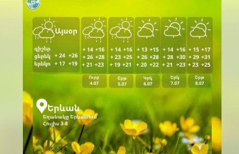 Օդի ջերմաստիճանը հուլիսի 4-ին կբարձրանա 2-3 աստիճանով, հուլիսի 5-ին նույնքան կնվազի։