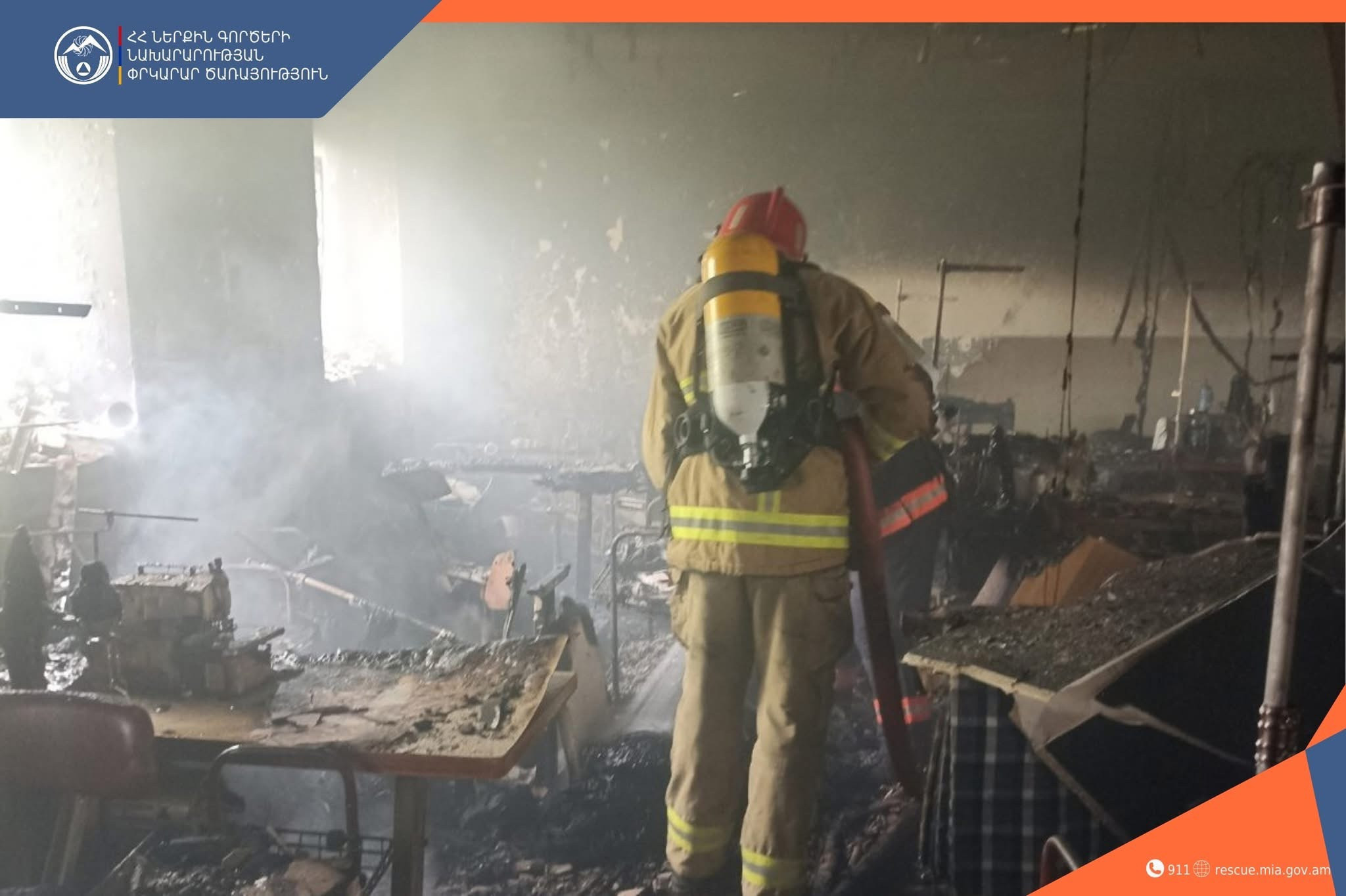 Պարզվել է, որ հրդեհը բռնկվել է եռահարկ կարի արտադրամասի երրորդ հարկում (մոտ 300 քմ)։