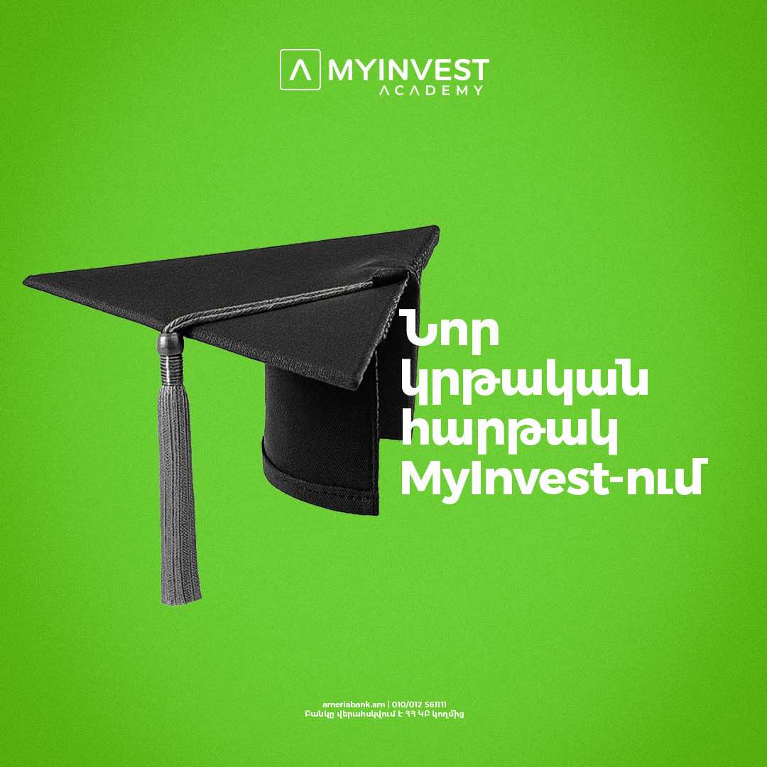 Ամերիաբանկի MyInvest հարթակում գործարկվել է MyInvest Academy-ն՝ նախատեսված ներդրումների ոլորտ մուտք գործել ցանկացողների համար։ Սա առաջին հայալեզու կրթական հարթակն է ներդրումների մասին, որը հասանելի է անմիջապես մոբայլ հավելվածում և անվճար է: Academy-ն հնարավորություն է տալիս սովորել ներդրումների մասին զրոյից՝ քայլ առ քայլ ծանոթանալով հիմնական հասկացություններին և խորացնելով գիտելիքները յուրաքանչյուր թեմայով` պարտատոմսերից մինչև բաժնետոմսեր, ներդրումային ֆոնդեր, ոսկի, նավթ և այլն։ MyInvest Academy-ում այս պահին արդեն իսկ հասանելի է ներդրումների մասին 12 թեմա։