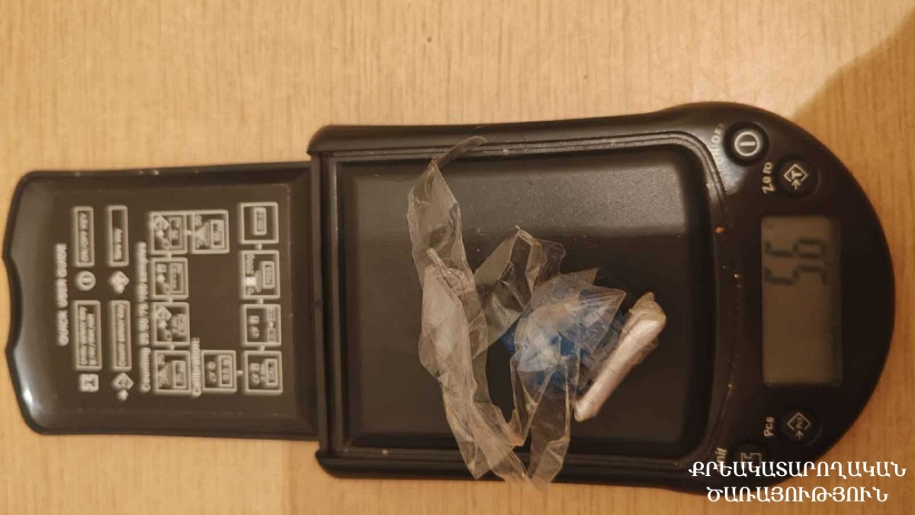 Խուզարկության արդյունքում վերջինիս կիսավարտիքի միջից ծառայողները հայտնաբերել են փաթեթ, որում առկա են եղել 1,1 գրամ քաշով կաթնագույն, փոշենման և ընդհանուր 2,2 գրամ քաշով բյուրեղանման, առանձնացված զանգվածներ։