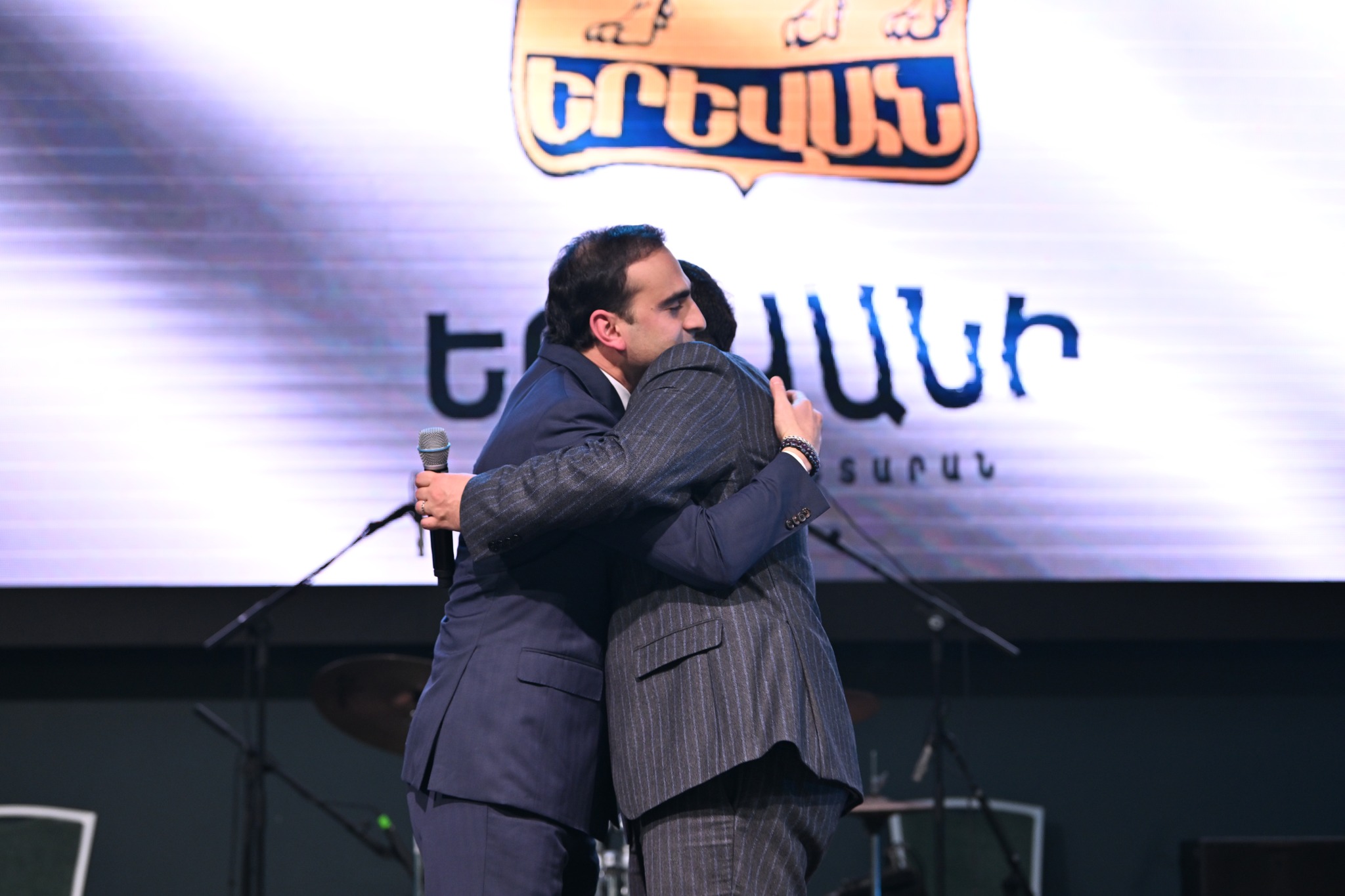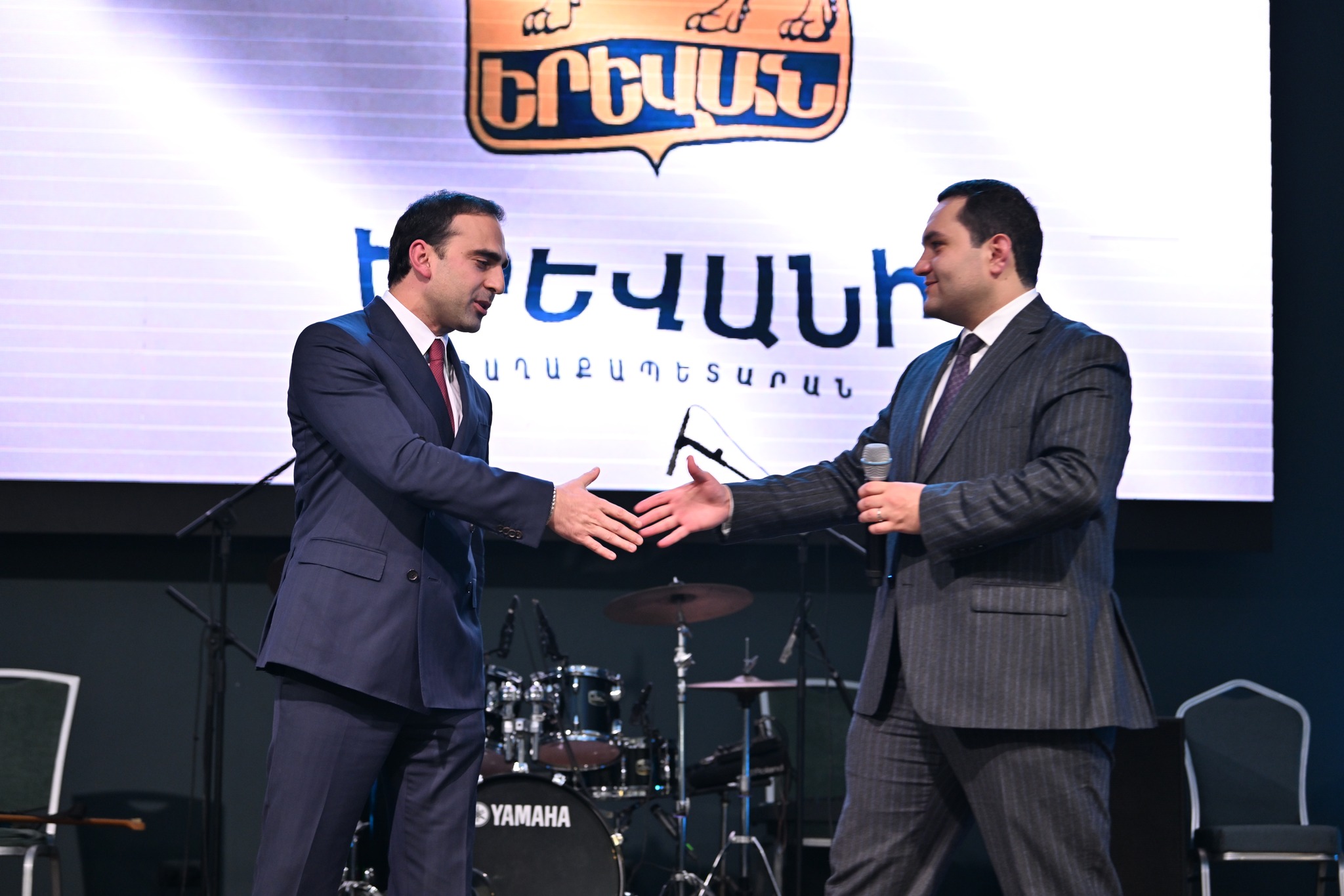 Ոսկե մեդալը Երևանի քաղաքապետ Տիգրան Ավինյանին է հանձնել ՀԱՊՀ ռեկտոր Գոռ Վարդանյանը: