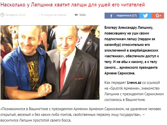 Հիմա հասկանում եմ՝ ինչու է Ադրբեջանի պես թշնամի ունենալը վիրավորական. Լապշինի արձագանքը ՝ադրբեջանական մամուլի հերթական խեղաթյուրանքին
