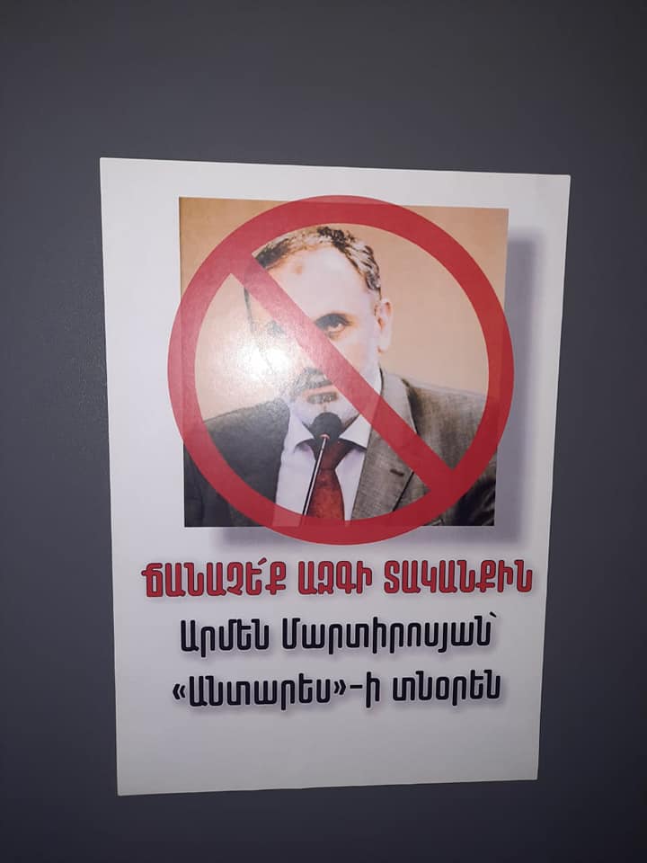 ՀՅԴ Հայաստանի երիտասարդական միության ֆեյսբուքյան էջում լուսանկարներ են հրապարակվել, որոնցում երևում է, թե ինչպես են ՀՅԴ անդամները «Անտարես» ընկերության պատին Արմեն Մարտիրոսյանի դեմ պաստառները։