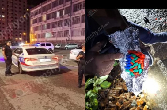 Պարեկները նշված վայրում հայտնաբերում են կասկածյալներին և նրանցից մեկի մոտ անձնական խուզարկությամբ հայտնաբերվում են 30 հատ կապույտ, կանաչ և կարմիր գույների կպչուն ժապավենով փաթեթավորված փաթեթներ՝ ընդհանուր 73․55 գրամ քաշով։
