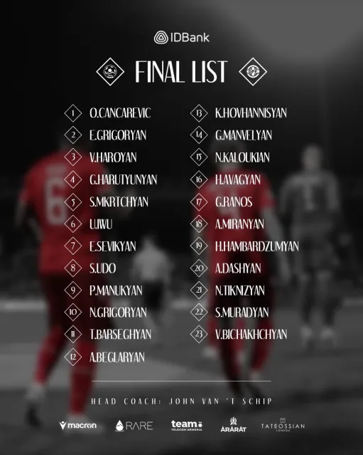 Հրապարակվել է Հայաստանի ազգային հավաքականի վերջնական հայտացուցակը Վրաստանի դեմ խաղում: